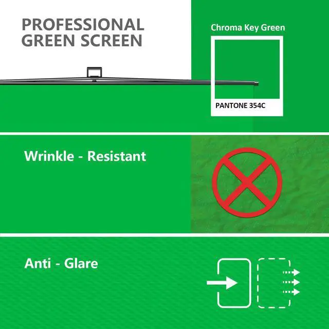 Pro Level Green Screen: 59.8(W) x 82.7(H) professional chroma key screen provides optimization for camera chroma keying.