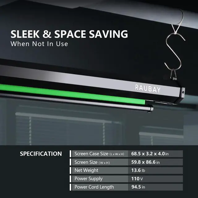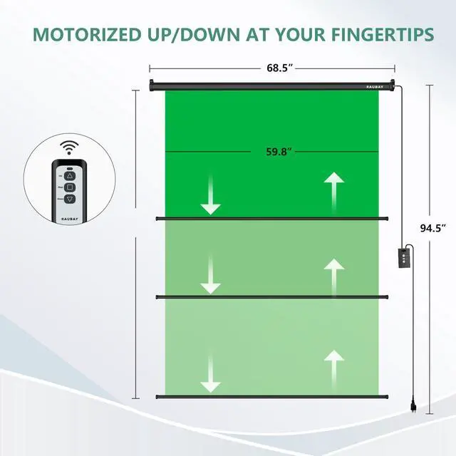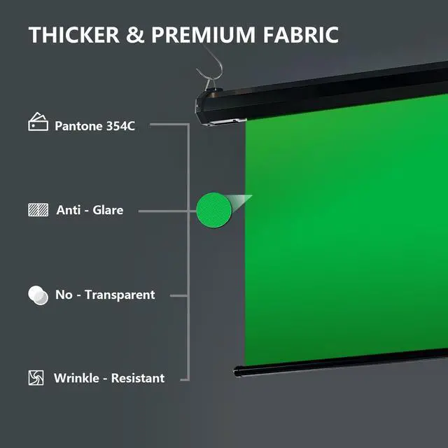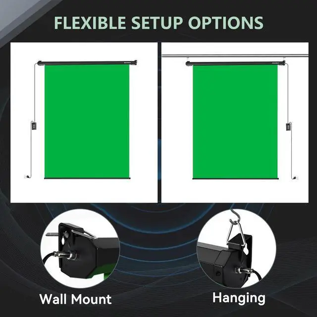 Screen Size: Our motorized drop-down green screen measures 59.8(W) x 86.6(H), providing professional color for capturing content.