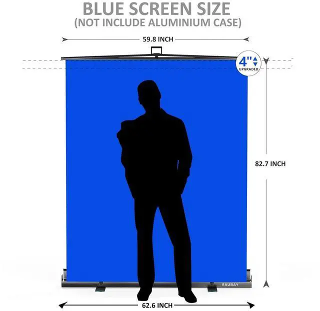 RAUBAY 59.8 x 82.7in Collapsible Blue Screen Backdrop Portable Retractable Chroma Key Panel Photo Background with Stand for Video Conference, Photographic Studio, Streaming