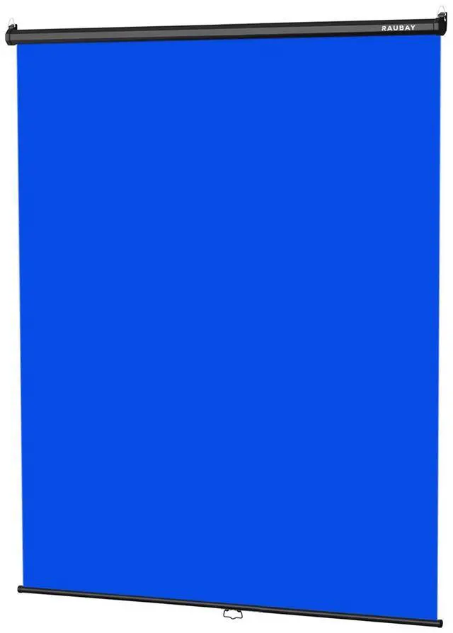 RAUBAY 59.8 x 86.6in Retractable Pull Down Blue Screen Collapsible Wall-Mount Background for Professional Video Production, Chroma Key Backdrop for YouTube, TikTok, Streaming, Video Conferencing