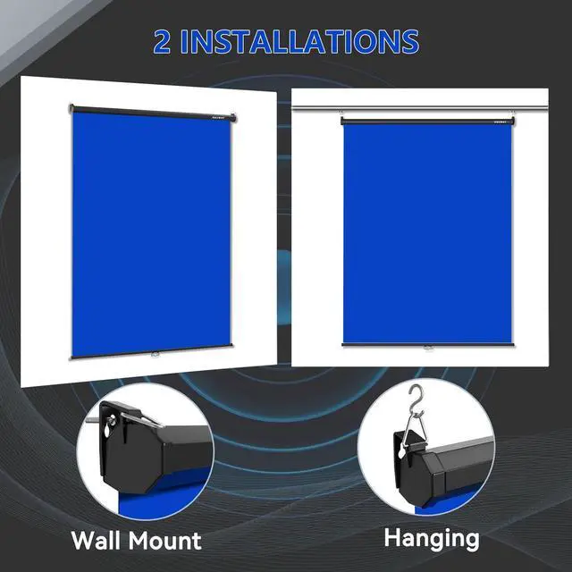 2 Installations: Our retractable pull down blue screen offers two installation methods: wall hanging and hanging, providing you with the flexibility to choose the option that best fits your needs.