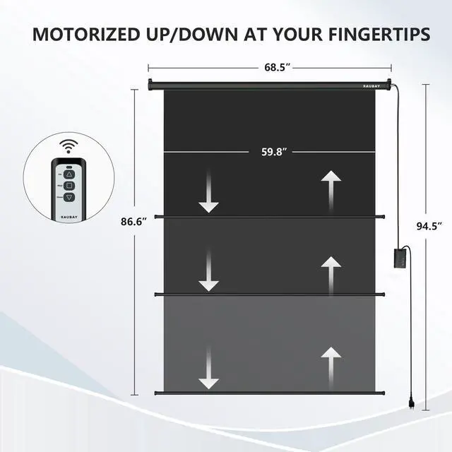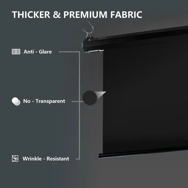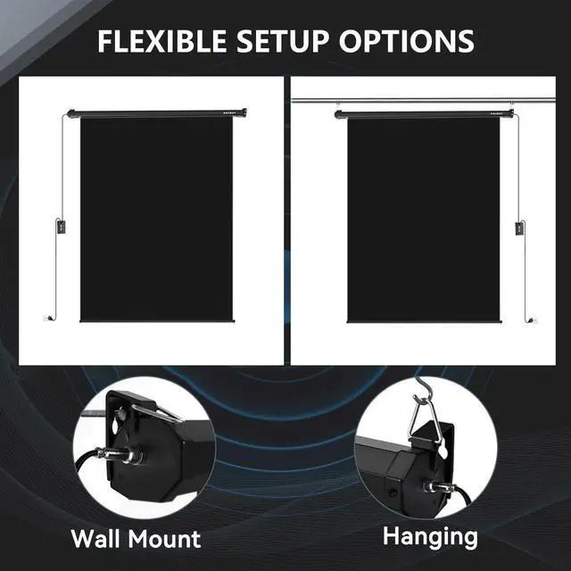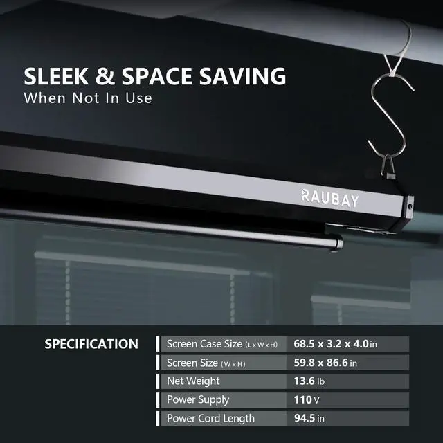 Screen Size: Our motorized drop-down black screen measures 59.8"(W) x 86.6"(H), providing professional color for capturing content.