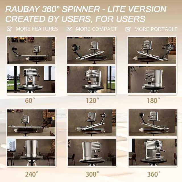 RAUBAY 360 Degree Spinner (Lite Version) - Main Part Professional Photography Turntable Photo Video Platform, Spinning Camera Slider For Commercial Video, Food Shooting, Product Photography