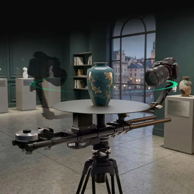 Premium Structure: Robustly built for stability, the camera arm supports up to 6.6 lbs (3 kg) with all 3 joints rotating up to 270° for maximum shooting flexibility. The turntable holds up to 44 lbs (20 kg) for secure object placement. A versatile base with 3/8" and 1/4" threads allows easy mounting on tripods or the included cruciform stand.