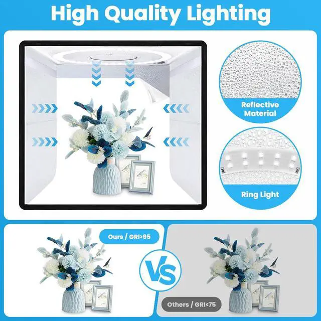 High Brightness: Our 16" x16" mini photo booth features 120 high-quality LED light beads, provides enough brightness for shooting.