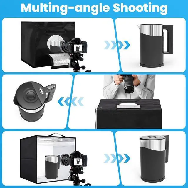 Multi-angle Shooting: Folding light box With one front horizontal shooting window and one vertical window. Its multiple openings design allows you to choose any photo shooting position.