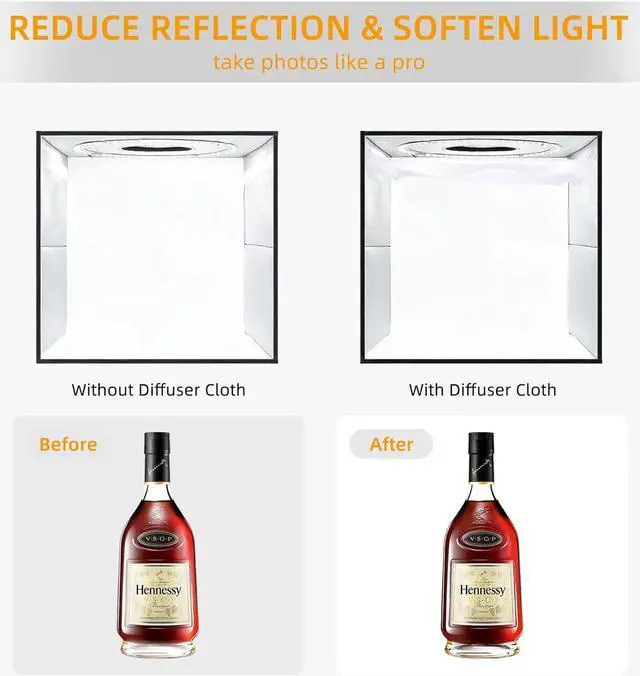 [Multi-Angle Shooting Flexibility] - Adjustable top and front openings enable 360° access, allowing photographers to capture products from any perspective. 12" x12" x12" Photo box silver-textured interior fabric enhances light reflection, ensuring even illumination and sharp detailsperfect for highlighting intricate designs or textures.