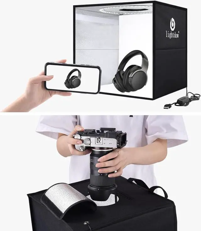 [Portable & Space-Efficient Design] - Collapses into a compact suitcase for easy transport/storage. Lightdow 12" x12" x12" photo studio light box is ideal for on-location shoots or small studios. Powers via USB 70" ( 1.8 m) cable or mobile battery, eliminating outlet dependency. Avoid use with >3A charging current.