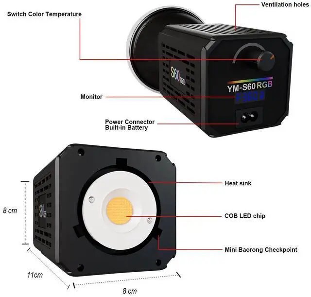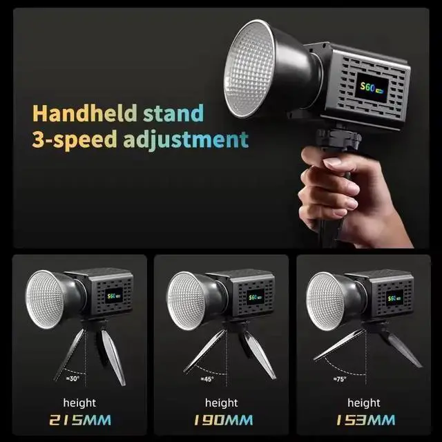 Enhance your creative projects with this advanced RGB COB Photography Light, designed for versatility and professional results. Compact and lightweight at just 450g, its handheld design (85 x 85 x 195mm) ensures easy portability for on-the-go shooting. The included adjustable metal tripod head rotates 180°, providing flexible positioning for various angles.