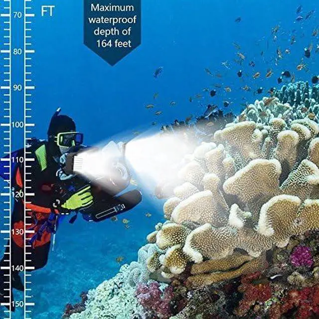 164ft Waterproof(50M): The dive light can waterproof 164ft(50M), You can shoot the photos and videos you want at the bottom of the sea to bring you the perfect visual effect. Even in heavy rains it will not affect the work of the underwater light.
