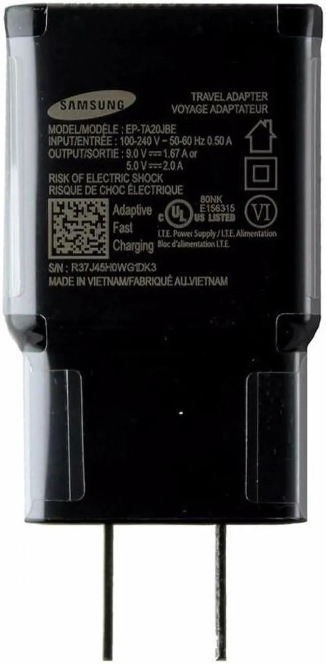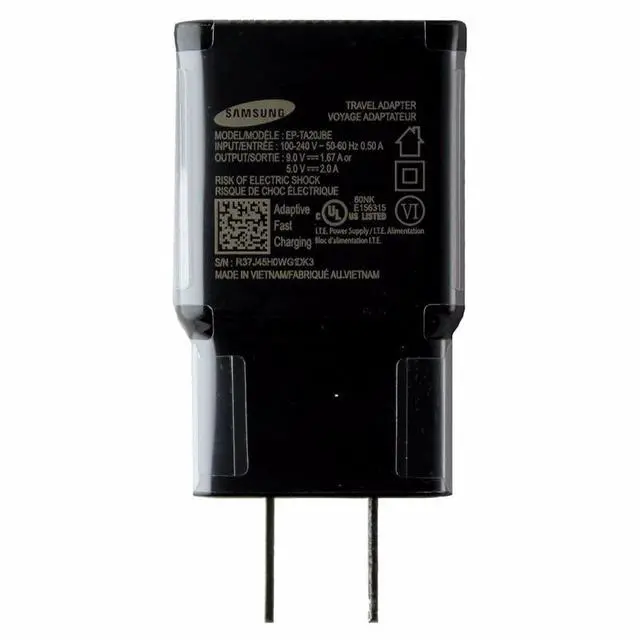 Samsung Travel Wall Charger with OEM Adaptive Fast Charging & Single 2A USB Port The Samsung Travel Wall Charger is an authentic OEM adaptive fast charging travel adapter wall charger with a single 2A USB port. This glossy black finish charger has fast charging capabilities and is universally compatibility with any device featuring a USB connector.