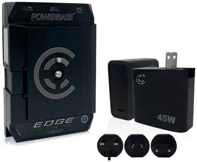 Its versatility extends to a USB Type-A output and a USB Type-C output, making it a comprehensive charging solution for everything from mobile devices to laptops. An 8V output compatible with legacy battery paddle cables ensures your DSLR camera or camcorder never runs out of power. With the Powerbase EDGE LINK, power interruptions during shoots become a thing of the past. Monitoring your battery's status is a breeze with the built-in runtime LCD. In standby mode, the LCD displays the percentage and grid. When under draw, it showcases the remaining runtime, percentage, and grid.