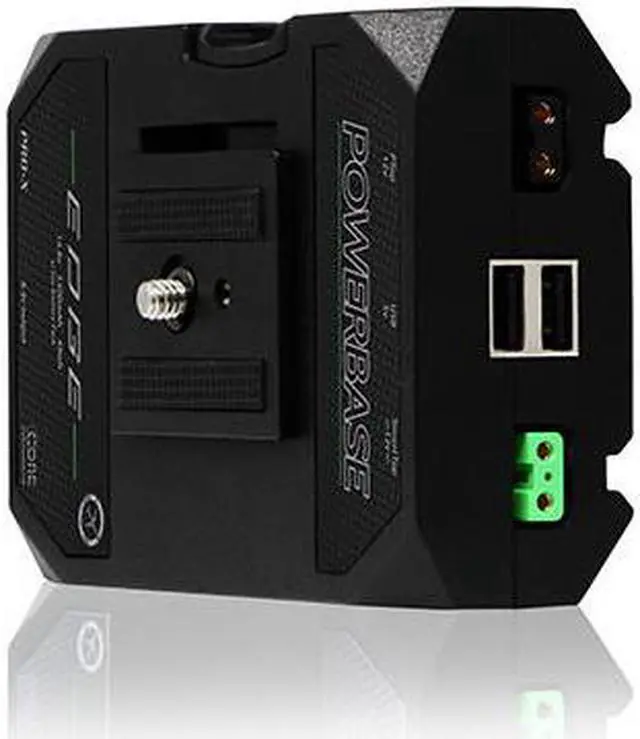 The follow-up to the highly successful Powerbase70, the Powerbase Edge is a feature-rich "small-form" Cine and DSLR pack, in a v-mount form. The 14.8 v Lithium Ion pack includes one 8v port to power various cameras, two USB output and two power tap outputs, one of which being a SmartTap. The 8v port provides a common power output for the majority of DSLRs and small-form cine cameras on the market which utilize small 7.4 v Li-Ion battery packs. There are an assortment of dummy battery cable attachments available which insert into that 8v port.