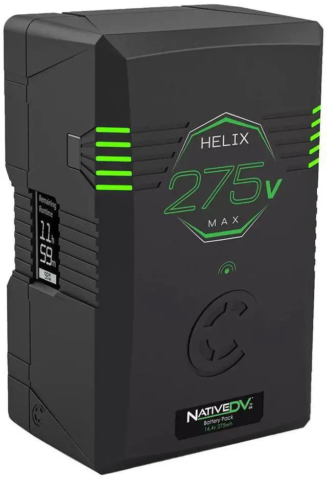Finally, the Helix Max 275 features Core's Sub60 Charge technology, allowing for rapid charging and multiple uses of the same packs throughout the day. This feature is perfect for traveling professionals who need to cycle their packs faster for their cinema and lighting production needs. In summary, the Helix Max 275 275Wh Native Dual Voltage Lithium-Ion Battery, V-Mount is an ultra-efficient, dual voltage platform that guarantees lossless power transmission and optimal performance, making it the ultimate power solution for all cinematographers and filmmakers.