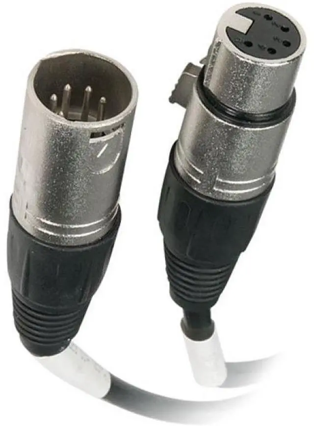 The CHAUVET PROFESSIONAL 5-Pin XLR DMX Cable is a high-quality 5-foot long cable designed specifically for professional lighting setups. Featuring a 5-pin XLR male connector on one end and a 5-pin XLR female connector on the other, this cable ensures seamless data transfer between your DMX controllers and fixtures. Ideal for use in stage productions, concerts, and installations, this DMX cable provides reliable performance and secure connections.