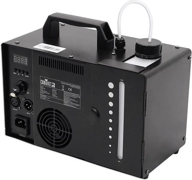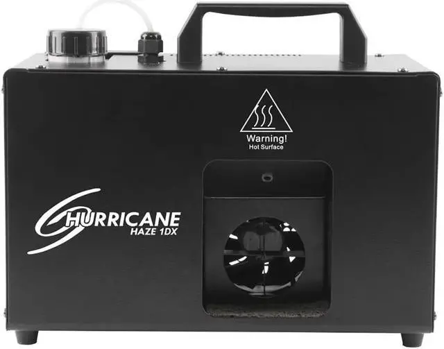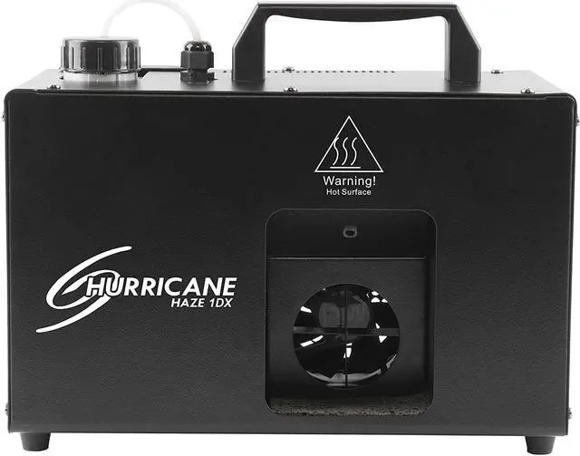 Hurricane Haze 1DX creates a light water-based haze to enhance any light show. Easily set the DMX address and stand-alone operation using the digital display. The haze output and blower speed can be adjusted in stand-alone mode using the digital display with no controller required. A built-in sensor helps prolong the hazers life by stopping the pump automatically when the fluid level is low