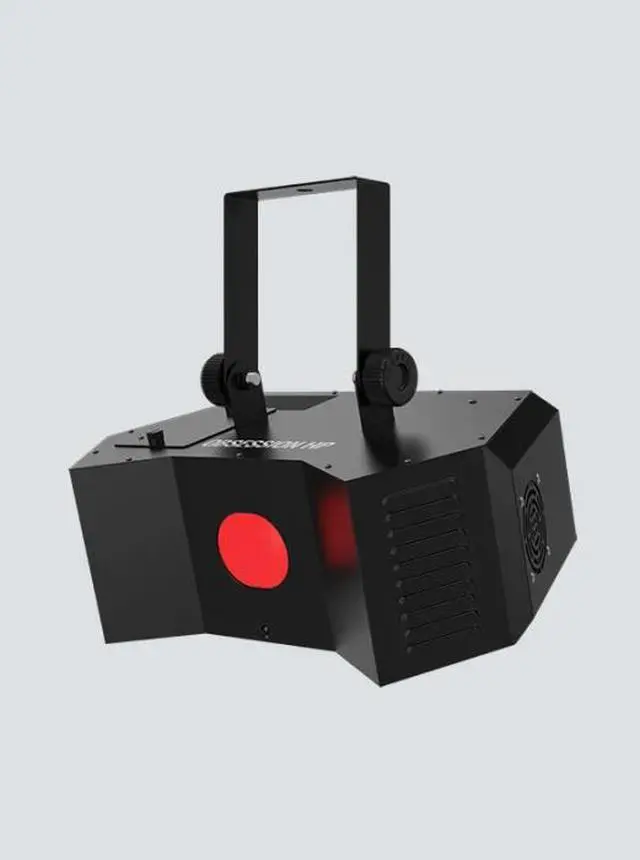 Compact LED effect light fitted with a 100W LED projects multi-colored, rotating gobos