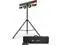 Designed for fast setup and teardown, the system includes a tripod stand, wireless footswitch, RF remote, and carry bags, making it ideal for mobile DJs and event professionals. The reversible mounting bracket allows for flexible positioning, including upside-down mounting for creative setups, while the full-color LCD display provides quick access to settings and programs.