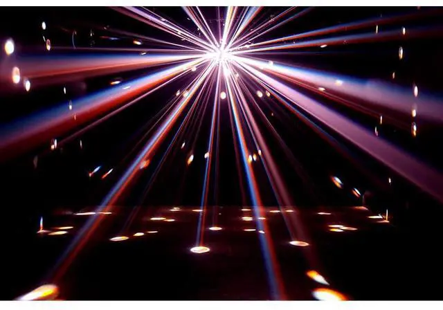 - Unique "futuristic mirror ball" effect with rotating light bursts