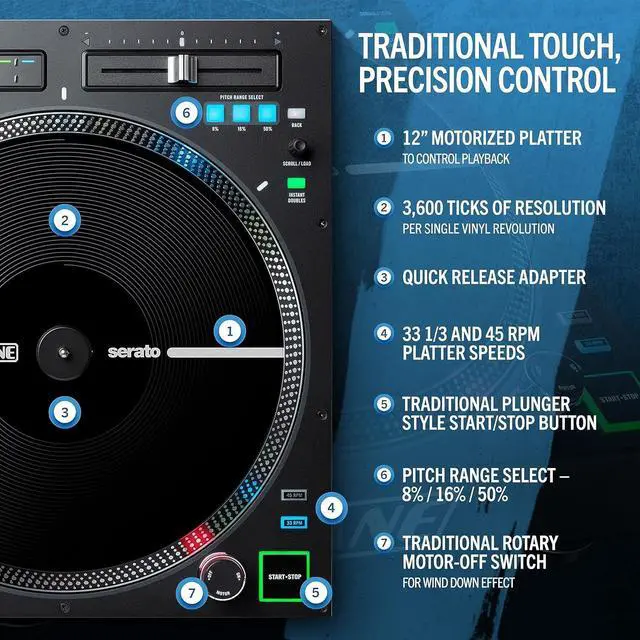 Rane Twelve MKII is a motorized DJ controller built for turntablists and digital DJs who demand the tactile feel of vinyl with the flexibility of software control. Its 12-inch motorized platter and solid steel build bring traditional turntable performance into modern setups, making it ideal for scratch DJs, battle sets, and high-precision mixing. Rane Twelve MKII Competitive Differences