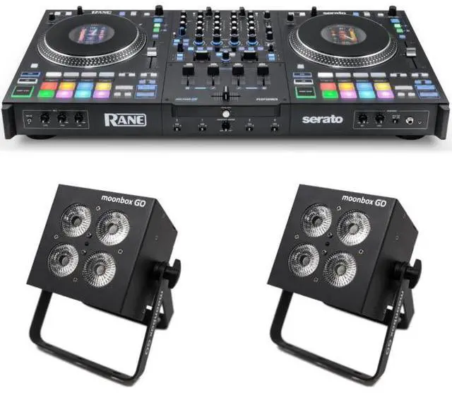 RANE Performer w/ MoonBox GO Set is a premium performance package built for DJs who demand top-tier control and atmosphere. This bundle combines RANEs most advanced motorized controller with two wireless, battery-powered uplights from Prost Lightingideal for mobile DJs, event pros, and stage performers. RANE Performer + MoonBox GO Competitive Differences