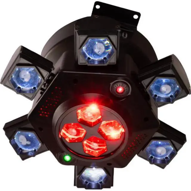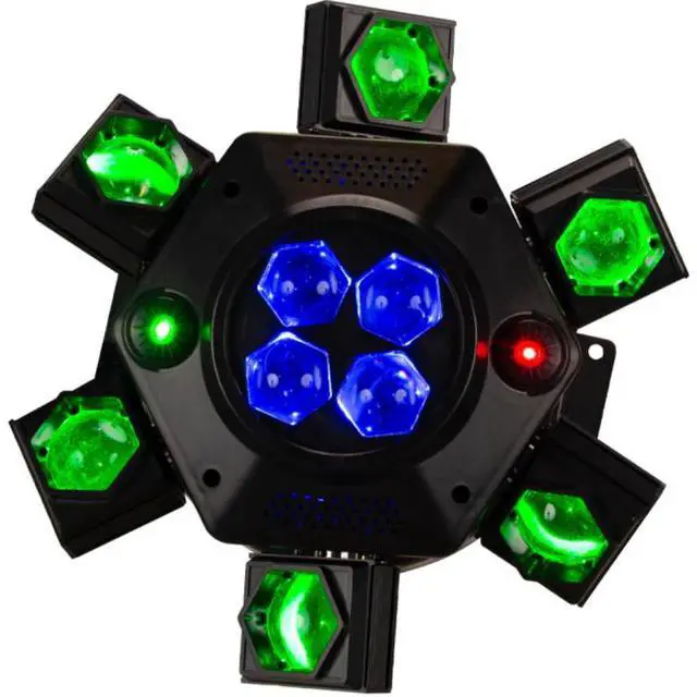 Eliminator CenterDroid is a compact, high-energy centerpiece lighting effect designed to energize clubs, bars, and DJ stages. Combining powerful LED beams and vibrant laser projections, it fills the room with dynamic motion and color. Its moving arms and rotating center lens create a constantly shifting visual experience, while the laser effects add depth and atmosphere to any light show. Eliminator CenterDroid Competitive Differences