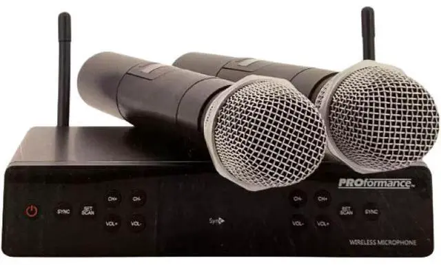 - Dual handheld wireless microphones