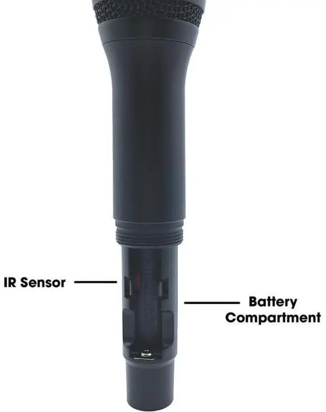 - 100 UHF frequencies with auto-scan and IR sync