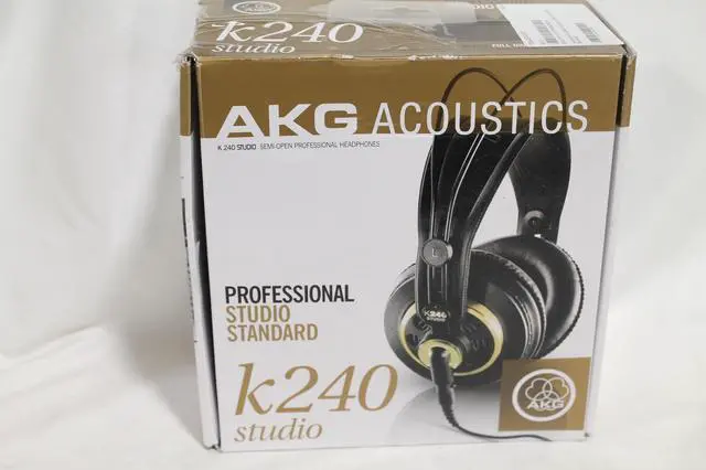 AKG K240 Studio Headphones feature a classic design that has become a standard in monitoring. This newer, lower impedance, 55-ohm version provides remarkably higher volume level when used with portable studios, keyboards, drum machines and other project studio gear. Its a professional level of performance for the home studio. Features include an integrated semi-open air design with a highly accurate dynamic transducer for naturally open sound quality, and circumaural (around-the-ear) pads for hours of wearing comfort. Frequency range: 15 Hz to 25,000 Hz. Stereo (1/8-inch minijack and 1/4-inch) connections. AKG K240 Studio Features: Low, 55 Ohm impedance, plug-in cable, Self-adjusting headband for optimum fit, Single cable for ease of use, Semi-open, circumaural design.