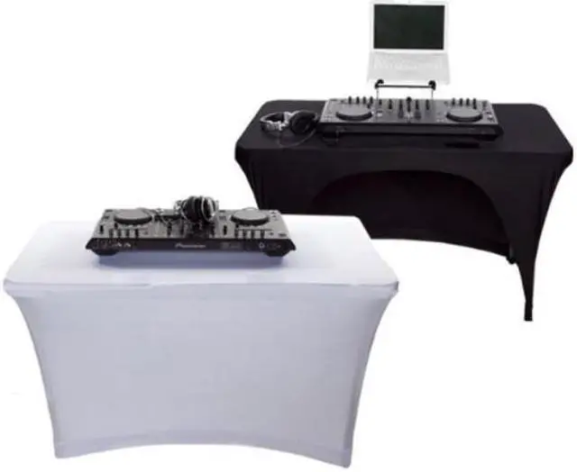 The Scrim King TBL401-W is a professional white table scrim designed to fit standard 4ft tables. Built with functionality in mind, it features an open back for easy access to gear and three integrated cable pass-through holes for clean, discreet wire managementperfect for DJs, AV techs, and event pros looking for a polished presentation.