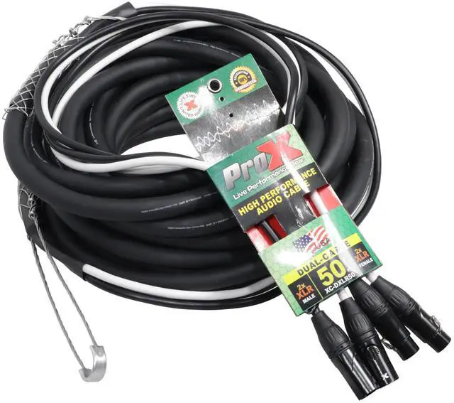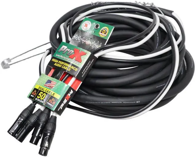 ProX XC-DXLR50 50' Ft High-Performance Dual XLR-M to Dual-F XLR Audio Cable. ProX Live Performance Gear Cables are made to last you an entire lifetime. Each cable is made with high-quality materials and delivers a clear signal and connection each time. These cables are made by professionals for professionals like you. Each cable is built for High Performance and to withstand heavy everyday use.