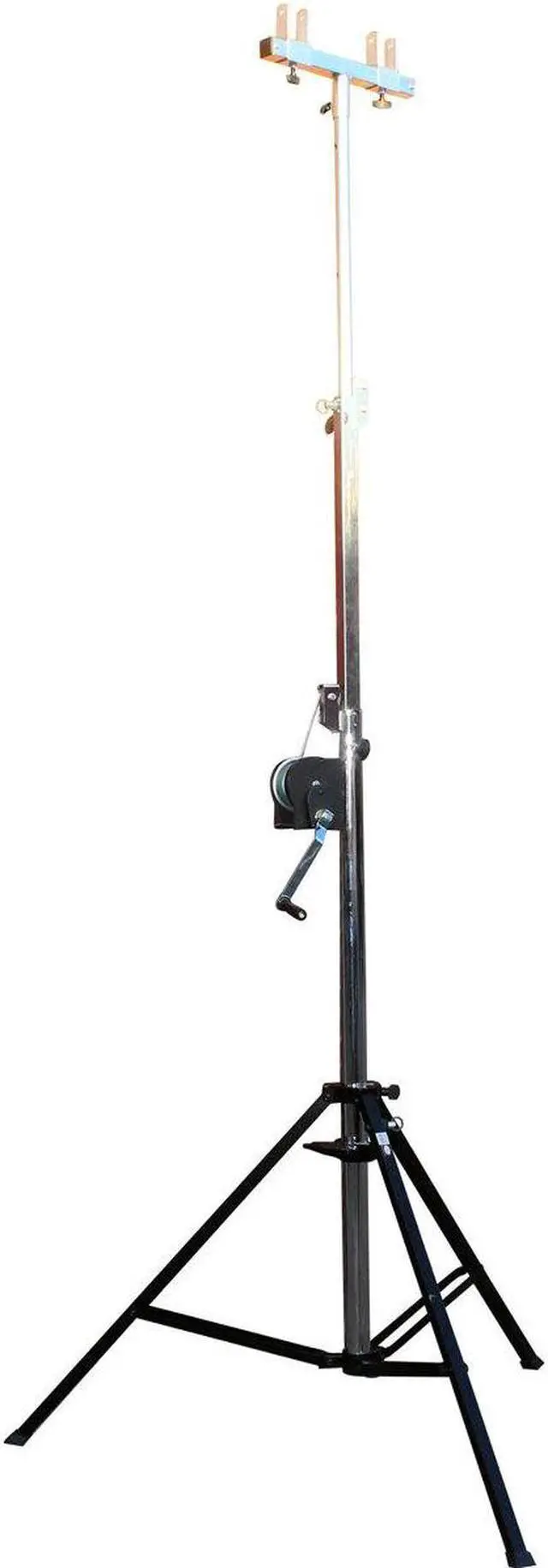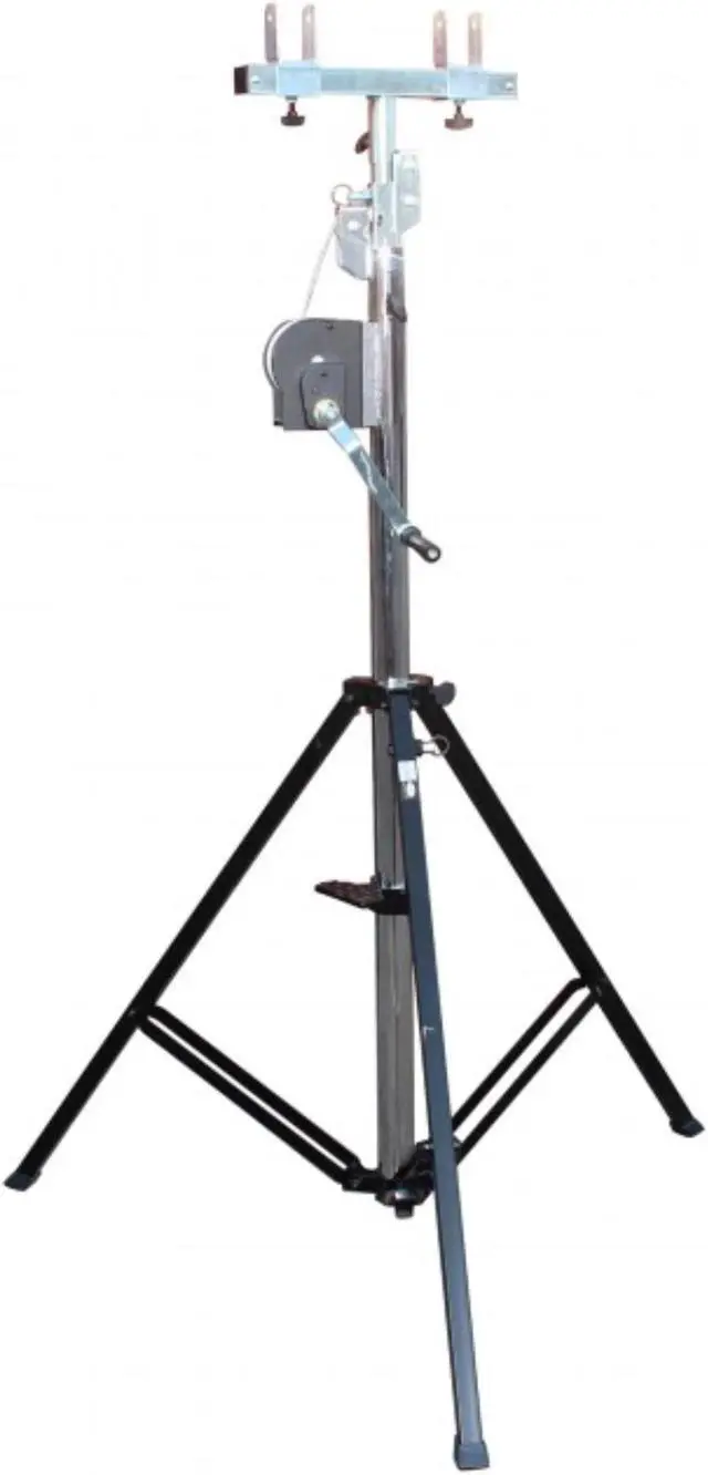 It folds easily to portable size for transport. It's equipped with a smooth, heavy-duty cranking mechanism. Perfect for a live band and mobile DJ applications, eliminate direct lifting and lowering of heavy loads.