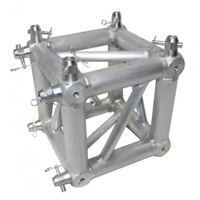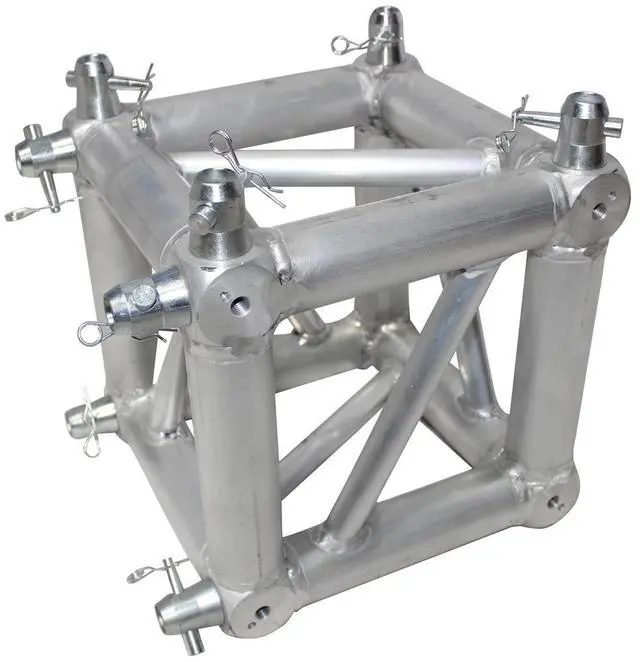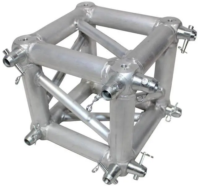 TheProX XT-JB6W-2W Square Truss Junction Blockis a universal connecting point for F34 trusses, and it's equipped with connecting hardware for use withProX XT F34square truss components. It features 2" outer diameter tubing and 3/4" diagonal bracing. It has XT Series 2mm thick tube walls, thistrussjunction block is strong and can be used for many applications. It is built to the highest standards of safety and performance. 8 Half Conical couplers included, additional conical couplers can be added for more utility.(Sold Separately XT-CA-103)At the heart of the system is square truss that utilizes a standard conical connector system, which easily mates with other brands of truss of the same size and connector style, It also works with different types of corners, base plates, connectors and accessories that add stability while expanding on limitless configurations. Always know your load weight for your equipment:VERY IMPORTANT - CLICK HEREfor Truss Loading Chart.Tolerance Free Standard Conical connector Main tube wall thickness of .08in XT-SQ SERIES DIMENSIONS:Height: 11.42in / 290mm Width: 11.42in / 290mm Weight: 21lb per 3.28 ft / 9,5kg per meter Main Tube: 2in / 50mm Wall Thickness: .08in / 2mm Braces: .75in / 20mm Includes connecting hardware set.ProX Truss products utilize industry-standarddimensionsto be compatible to connect to/with many other manufacturers trussing.