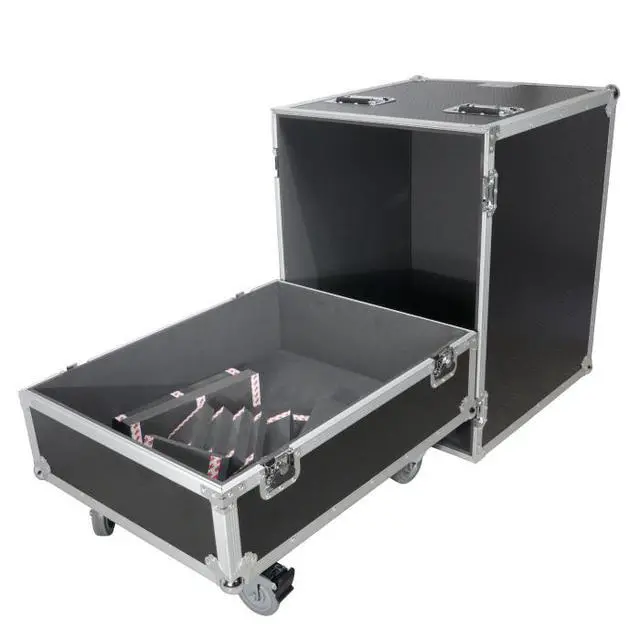 The ProXXS-292922SPWis the perfect case for AV production companies, touring bands, entertainment groups, and mobile DJs. This case rests on four4" casters designed for easy traveling, it also comes equipped with caster dishes on top to facilitate stacking with other flight cases. This case stores up to stacked line array speakers or fits 1 Subwoofer.