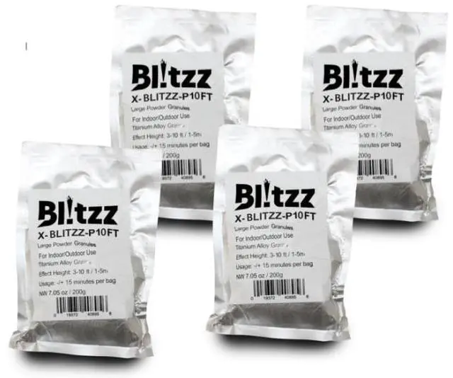 ProX X-BLITZZ-P10FT is a 4-pack of composite cold spark effect powder, formulated specifically for use with the ProX Cold Spark Generator. Composed of 80% titanium and 20% zirconium, this non-pyrotechnic material offers a spectacular visual experience while maintaining safety for indoor and close-proximity use. Unlike traditional fireworks, this powder produces sparks at approximately 62°F (16.7°C), ensuring no burn risk for nearby audiences or performers.