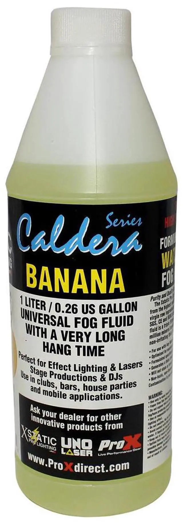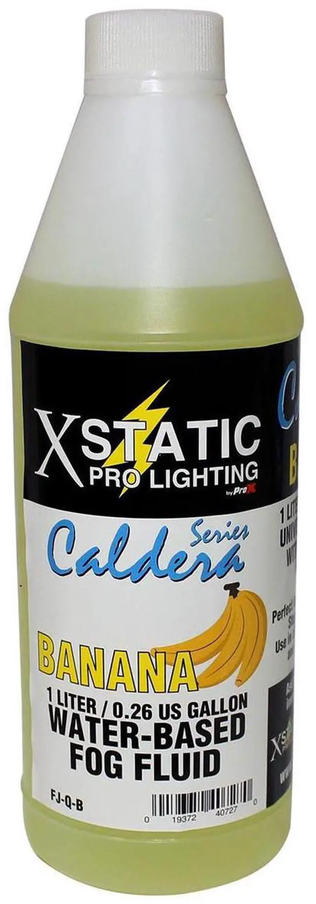 Adhering to FDA, SGS, CE, and ROHS standards, this product guarantees safety and quality. This non-toxic, water-based fluid is a meticulously triple-filtered blend, containing less than five (5) parts per million mineral impurities. It is specifically designed to produce a safe, non-irritating, and thick fog in most conventional water-based fog machines or hazers. Experience the sweet, fruity aroma of banana with the ProX FJ-Q-B Caldera Series Fog Juice, the superior choice for a long-lasting and effective scent that enhances your fog machine's performance.