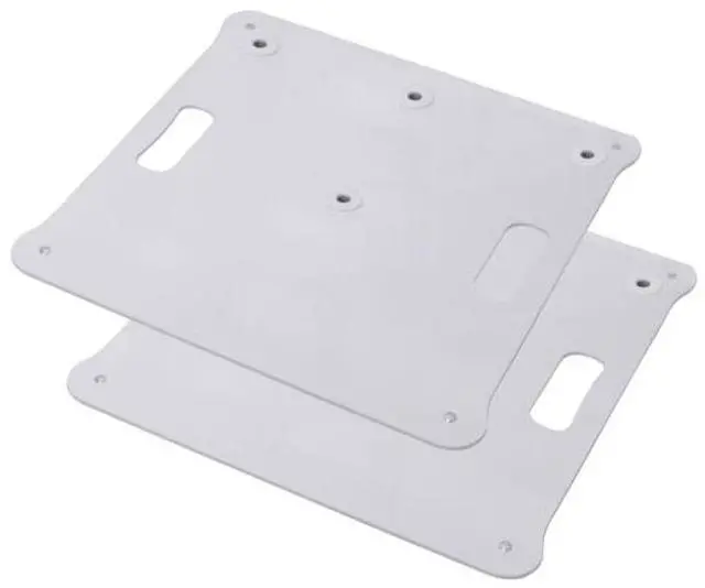 ProX X-POLARISWHX2PLATES set includes two rugged speaker pole base plates made to withstand the demands of touring and professional installations. Each plate measures 22 inches in diameter and weighs 29 pounds, delivering the stability needed to safely support elevated gear like speakers, lighting, or décor poles. Finished in a sleek white powder coat, these plates provide a clean and polished look that blends in seamlessly at weddings, corporate events, and upscale venues. Whether you're using them with ProX Atlas poles or any M20-threaded support, the Polaris plates deliver secure, professional-grade mounting. Each plate comes with its own heavy-duty carry bag, offering padded protection and convenience when transporting or storing your gear. Ideal for production companies, DJs, and AV installers, the X-POLARISWHX2PLATES ensures a dependable foundation for your setups â?? every time. Model Features