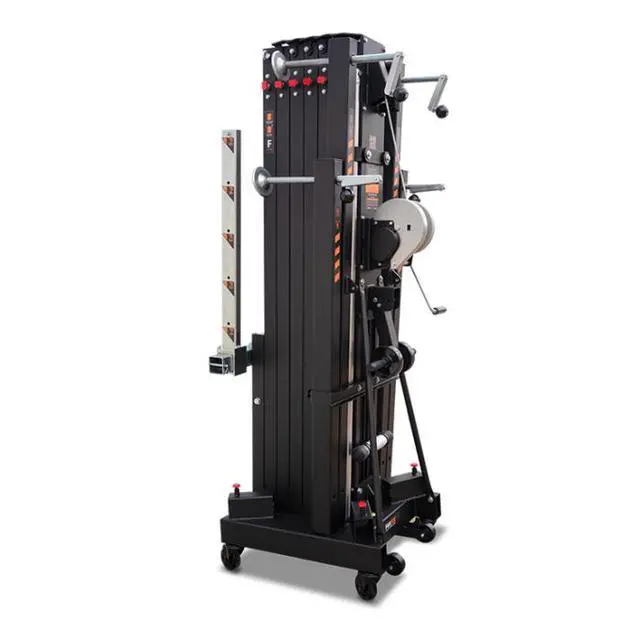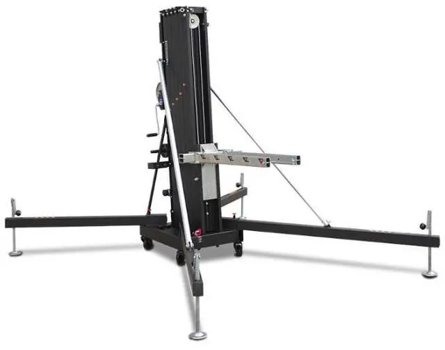 ProX XTF-FT8045 is a premium lifting tower designed to elevate line array systems and similar loads with minimal effort and maximum safety. Its front-loading configuration means that equipment can be raised directly from the floor, eliminating manual lifting stress and ensuring operational safety. Constructed with patented Dynamic Overlap® extruded aluminum trussing and a reinforced steel base with adjustable outriggers, this lift tower guarantees structural strength and long-term reliability. Its compact design folds down to just 6.56 ft, making it easy to transport and store, while castors allow for smooth mobility. Safety is enhanced by integrated features like the Pin Locking System, which transfers load off the winch cable, and the DYNSYS® torque management system, which halts operation if safety thresholds are exceeded. The WIREDRIVE® pulley system minimizes wire tension angles for longer cable and winch life. Whether for touring, installation, or mobile production setups, the XTF-FT8045 delivers trusted performance in the most demanding environments. XTF-FT8045 Features
