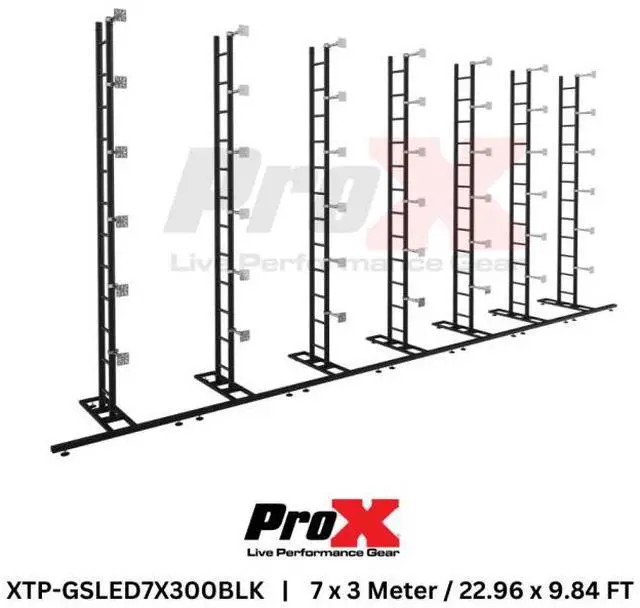 ProX XTP-GSLED7X300BLK is a premium LED video display panel ground support system designed for large-scale video wall installations. With a sturdy all-black design, this complete mounting solution provides exceptional stability for LED video displays, making it perfect for concerts, trade shows, exhibitions, and stage productions. Featuring a 7-meter (22.96 ft) width and a 3-meter (9.84 ft) height, it offers ample display space while maintaining a sleek and professional aesthetic. ProX XTP-GSLED7X300BLK Competitive Differences