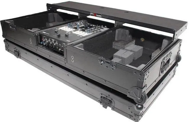 The ProX XS-TMC1012WLTFBTLBL Flight Case is For Rane 72 mixer and 2 Turntables in Battle Mode w/ Laptop Shelf with Black hardware on Black laminate. This case is constructed with ProX Gig Ready Signature Series 3/8" Plywood for complete protection of your investment. Standard on all our cases is steel, heavy-duty ball corners to withstand the rigorous travel that a pro-DJ demands. Black on Black modern design will turn heads and keep with the decor of any venue.
