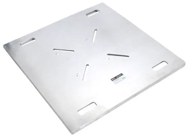 ProX XT-BTBP36A BoltXâ?¢ Professional Box Truss Base Plate is engineered to enhance your truss system with superior durability and precision. It is designed to mate perfectly with BoltXâ?¢ Truss sections, featuring an industry-standard 6.75" bolt pattern that ensures compatibility with most professional 12" box truss systems. Constructed with a 1/2" aluminum plate welded to 1" x 1.5" solid aluminum extrusions, this base plate is built for ultimate strength. The TÃ?V-certified welding and use of 6082-T6 alloy ensure long-lasting reliability and safety. The innovative slotted X and offset drilled pattern make mounting quick and efficient, saving time during complex setups. For added convenience, the XT-BTBP36A includes four hand holes for easy lifting and carrying, making it simple to position the plate as needed. Whether you're constructing lighting rigs or staging solutions, this base plate delivers unmatched performance and dependability. XT-BTBP36A Features