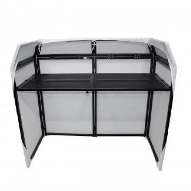 The ProX MESA DJ FACADE XF-MESA-MK2 gives you an elegant professional look. With its strong and lightweight 4 sided folding aluminum black finish. This DJ booth facade is all you need. With its easy setup system(less than 5 min). You can transform your DJ setup in minutes and look like the Pro you already are. The XF-MESA-MK2 includes both white & black scrims with carrying bags for the scrims and padded carry bag for the facade itself. The DJ table facade is designed to hold up to 150lbs evenly distributed and has a ventilated design to keep your equipment cool.