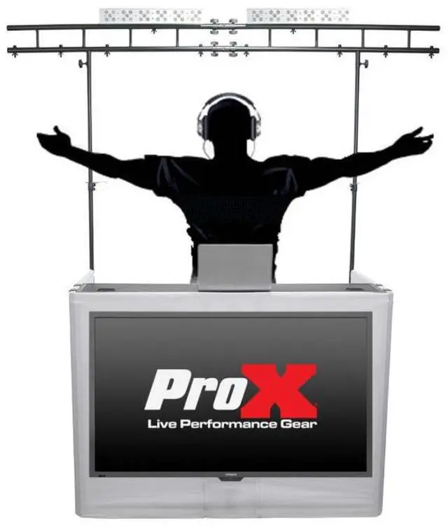 The ProX XF-MESAMEDIATRUSSPKG is a full-featured DJ workstation solution that combines a professional facade with a TV monitor mount, integrated lighting truss, and versatile scrim options. Designed for fast setup and portability, this package transforms any performance area into a sleek, multimedia-ready DJ station in under 10 minutes.