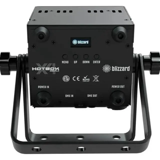 HotBox X4 RGBALC stands out as Blizzard Proâ??s most advanced HotBox model to date. It combines vibrant RGBALC color mixing and a compact form factor, making it a favorite for lighting professionals needing powerful performance in a small package. Whether rigged overhead or placed inside a truss, it delivers high-output washes with consistent results. The unit features a 25° beam angle, allowing for a wide and even spread of light. A flicker-free LED driver makes it suitable for use in video and broadcast environments, and the fixture also features adjustable PWM and 32-bit dimming for ultimate control. Navigating settings is easy with the user-friendly 4-button OLED menu, and installation flexibility is ensured with dual mounting brackets. HotBox X4 RGBALC also includes built-in DMX color and chase macros, as well as multiple DMX profiles (6/8/12 channels), making it a versatile solution for small events or complex light shows. HotBox X4 RGBALC Features