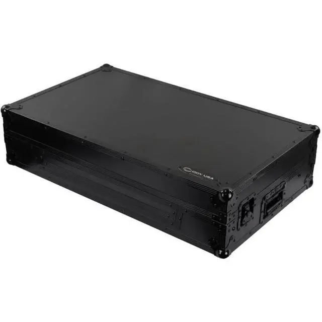 The case is constructed with all black anodized and powder-coated hardware for enhanced durability and a modern, understated look. Built-in roller wheels make transport between venues easier, while rubber feet provide stable placement during use.