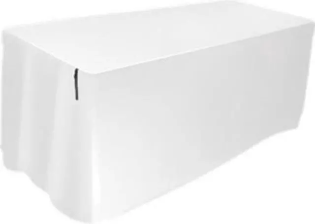The 8' white Table Cover is an entertainment skirt made from wrinkle-resistant polyester that is both durable and fire resistant. It is suitable for mobile DJs, sound and lighting companies, banquets, catering, trade shows, schools, hotels, restaurants, weddings, and many more situations. The cover dresses up any table or speaker stand while allowing for private, hidden storage underneath. It is form fitted to exact size, may be folded or rolled up for simple storage, and is machine washable.