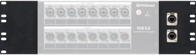 PreSonus NSB 8.8 Rackmount Kit allows you to install your NSB 8.8 AVB network stagebox into a standard 19" rack mount enclosure. The kit includes two blank panels, two Ethernet cables, and mounting screws. One panel features two Ethercon jacks, which once connected with the included Ethernet cables, provides access to the AVB network ports from the front panel.