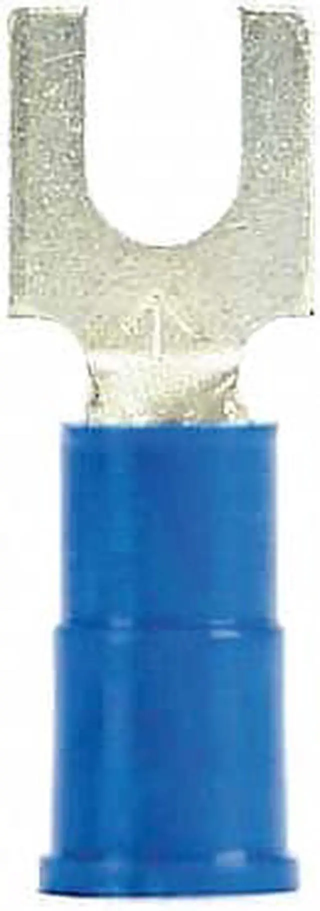 Fork Terminals, Contact Material Copper, Insulation Color Blue, Insulation Material Vinyl, Maximum Operating Temperature 221 Degrees F, Maximum Voltage 1, 000 V, Maximum Wire Size 14 AWG, Stud Size #6, Termination Style Crimp, Seam Style Butted, Standards CSA Certified, UL Listed, Barrel Length 0.25 in, Barrel Style Funnel, Compatible Grainger Part Number 1A076, 2FZN3, 4X316, Compatible Manufacturer Model Number TH-440, TH-450, TR-490, Compatible with Product Type Crimp Tool. This item has been restricted from sale in the following state (s): []