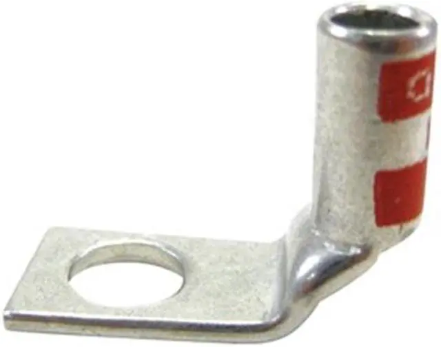 Compression Lug, Barrel Size Standard, Color Code Red, Die Code 21, Tongue Angle 90 Degrees Angled, Tongue Width 0.06 in, For Conductor Material Copper, For Stud Size 1/4 in, For Stranded Copper Wire Size - Maximum 8 AWG, Inspection Hole Yes, Hole Center to Center Not Applicable, Material Copper, Maximum Temperature 194 Degrees F, Maximum Voltage 35 kV, Standards CSA Certified, UL E9809, Number of Holes 1, Barrel Outside Diameter 0.25 in, Connector Type Angled Barrel, Contact Finish Tin. This item has been restricted from sale in the following state (s): []