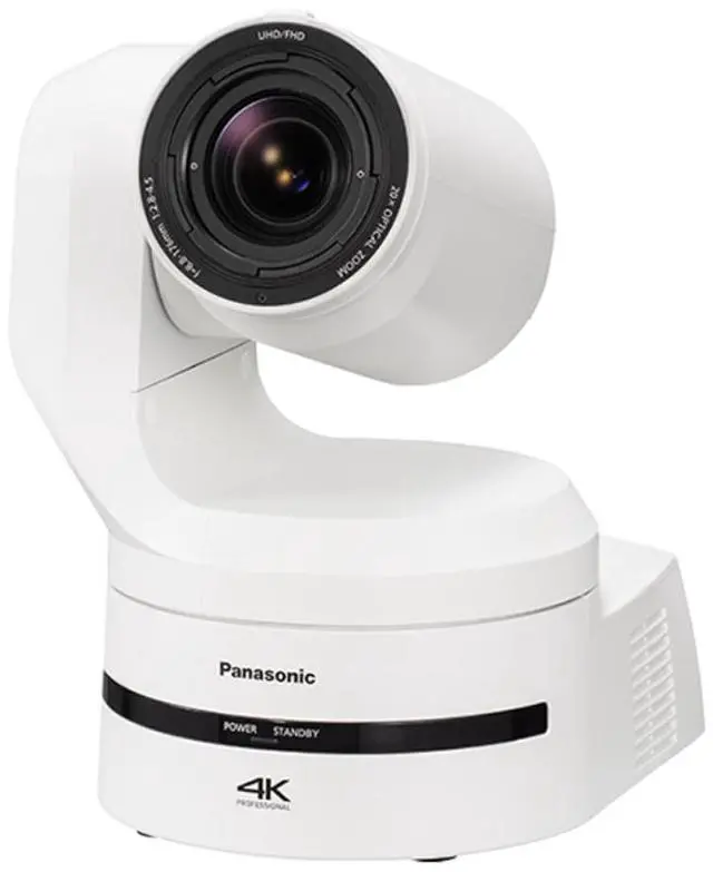 The AW-UE160 4K UHD HDMI/3G-SDI/IP Integrated 20x PTZ Camera, in a sleek white finish, is a state-of-the-art product from Panasonic that offers advanced features and superior image quality. This innovative camera is equipped with a newly developed 4K 1" MOS sensor, providing the highest sensitivity in Panasonic's PTZ lineup. This high-tech camera is perfect for capturing clear images in challenging lighting conditions, making it ideal for use in concert venues, churches, and other live event settings.